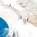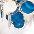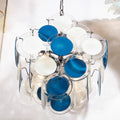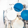 Modernist Pagoda Chandelier in Nickel & Handblown Murano White and Blue Discs