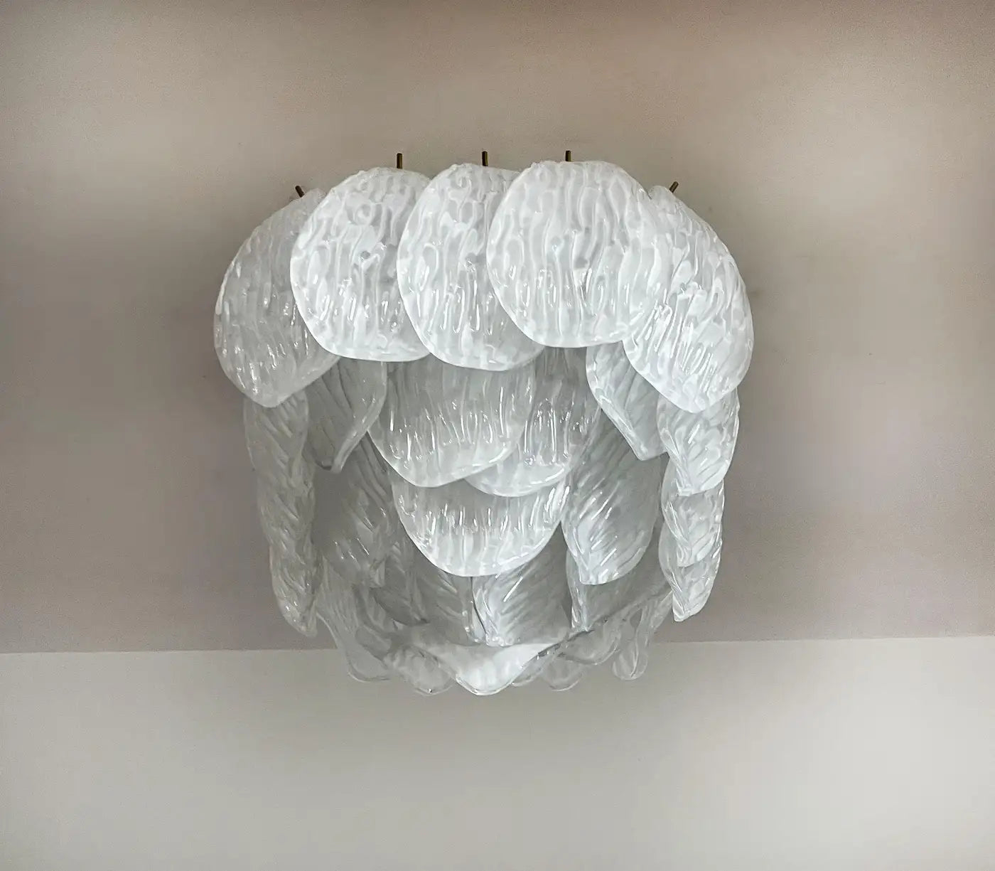 Murano ceiling lamp - frosted carved glass leaves