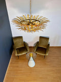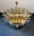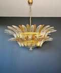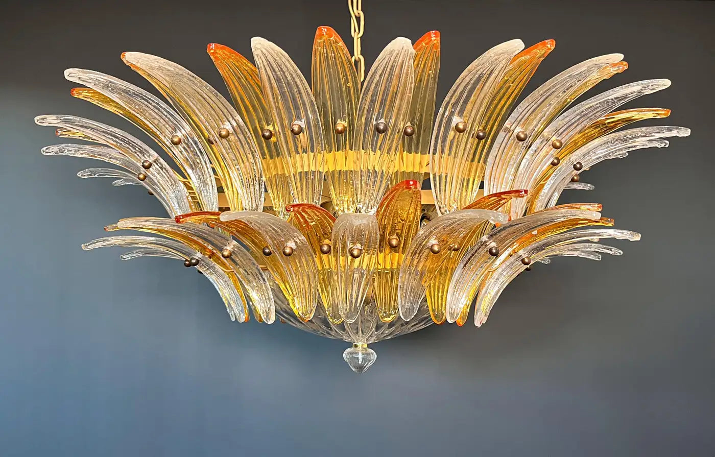 Murano Chandelier Original Palmette, two levels, 82 amber and clear glasses