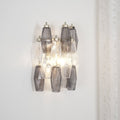 Illuminate your space with the exquisite Murano Rhombus Glass Wall Lamp. Each pendant is handblown and suspended from individual hooks, creating a stunning display of light and reflections. Made with graduated tiers and internal illumination, this lamp will add a touch of elegance and beauty to any room.