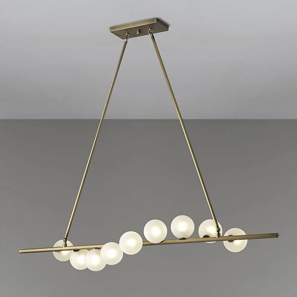 There’s a delightful lamp for everyone in the room with the smooth, spiraling design of the Nautilus Linear Suspension from Blueprint Lighting. The chandelier calls to mind the spiraling shell and name of the cephalopod mollusk. Its designer Blueprint Lighting creates the unexpected by taking an unconventional approach to design. Long, slender metal contours serve as the piece’s understated suspension and framework. Artisans hand blow opal glass globes individually then intricately arrange them around a crossbar. These globes spiral in a fluid motion, translating to a wavy silhouette and a multi-directional light with great atmosphere.
