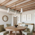 The Parker collection presents a clean yet structural design that adds form to your space. Our custom off-white linen shades diffuse light into a soft glow. Great above wide kitchen islands, over round dining tables, in commercial settings, and in multiples.