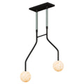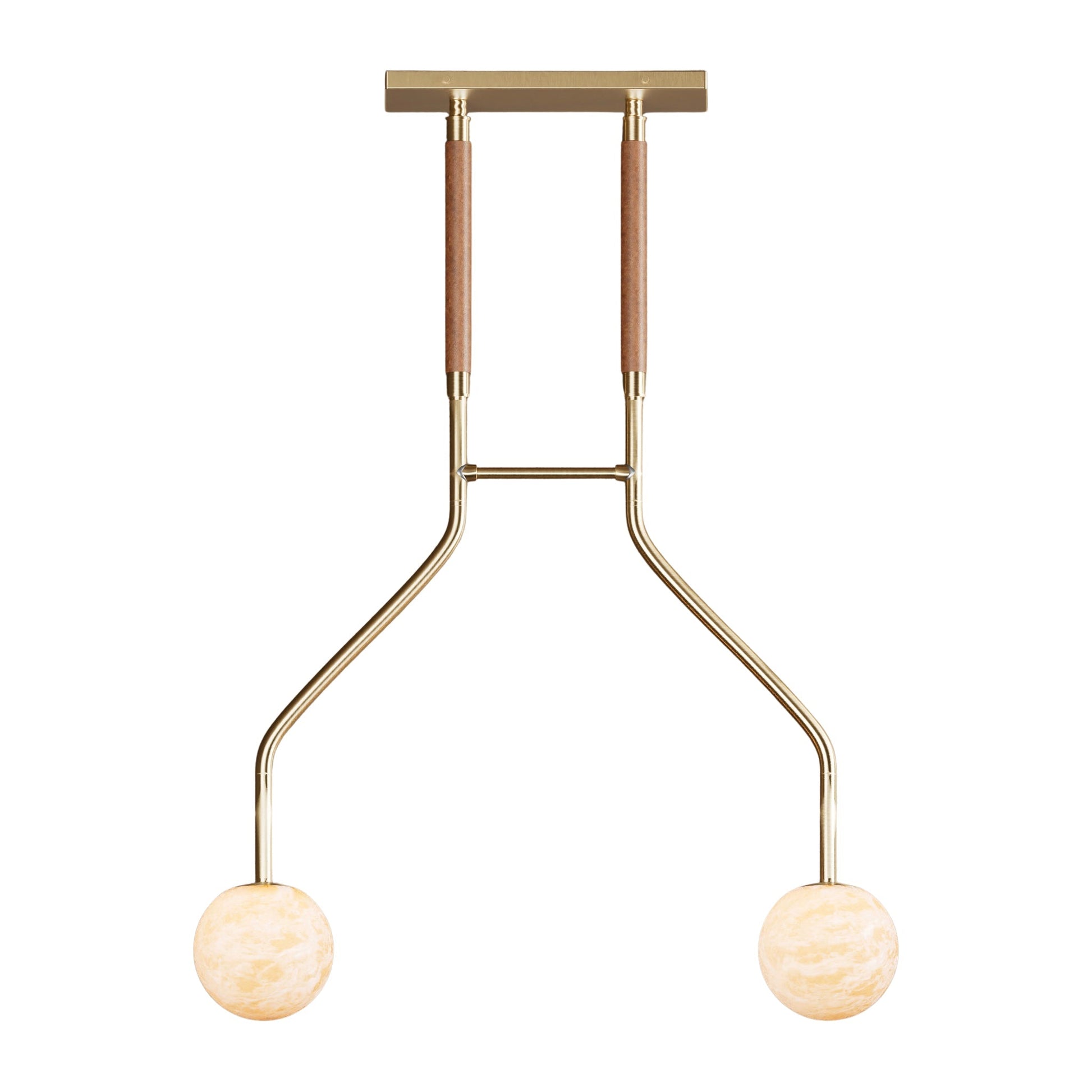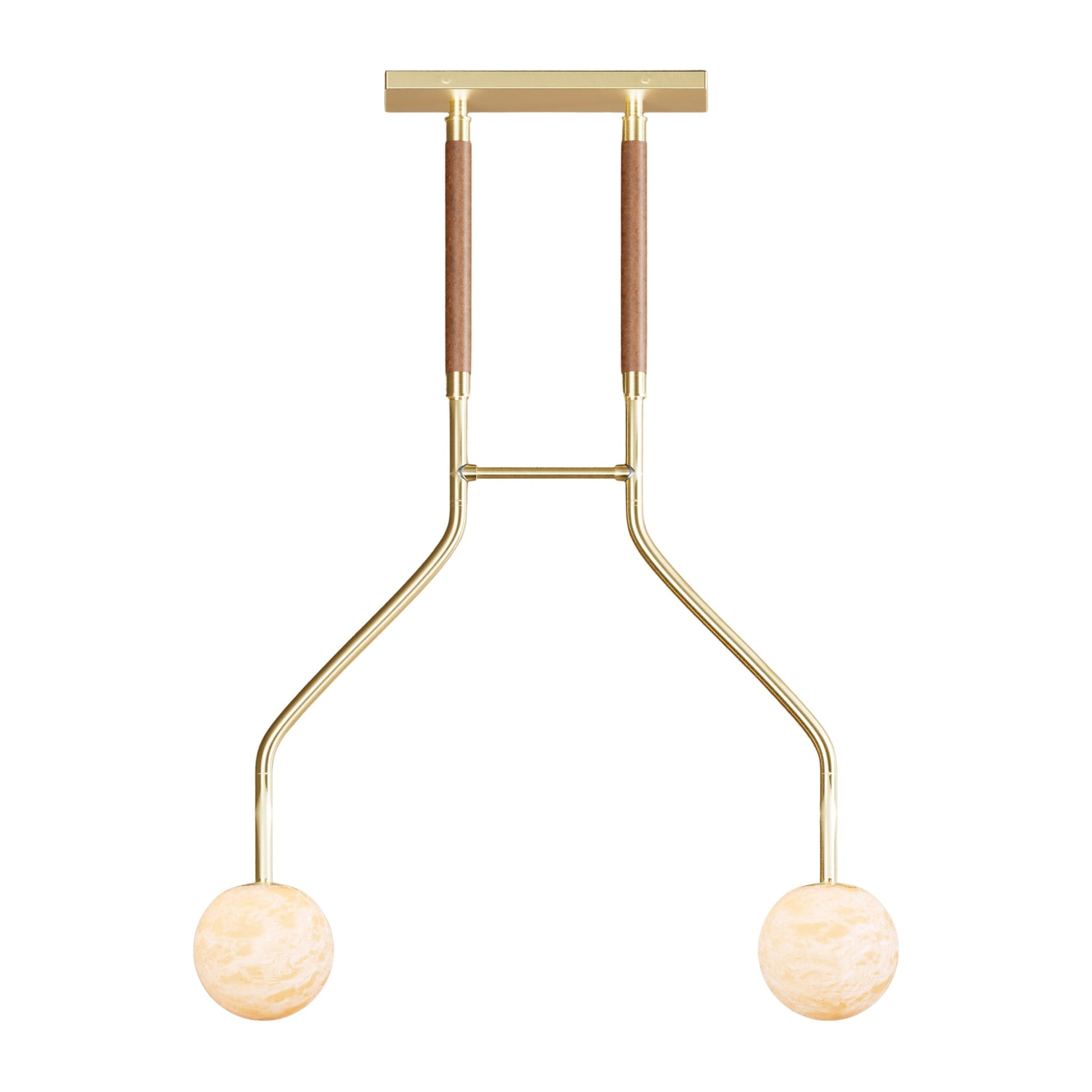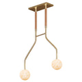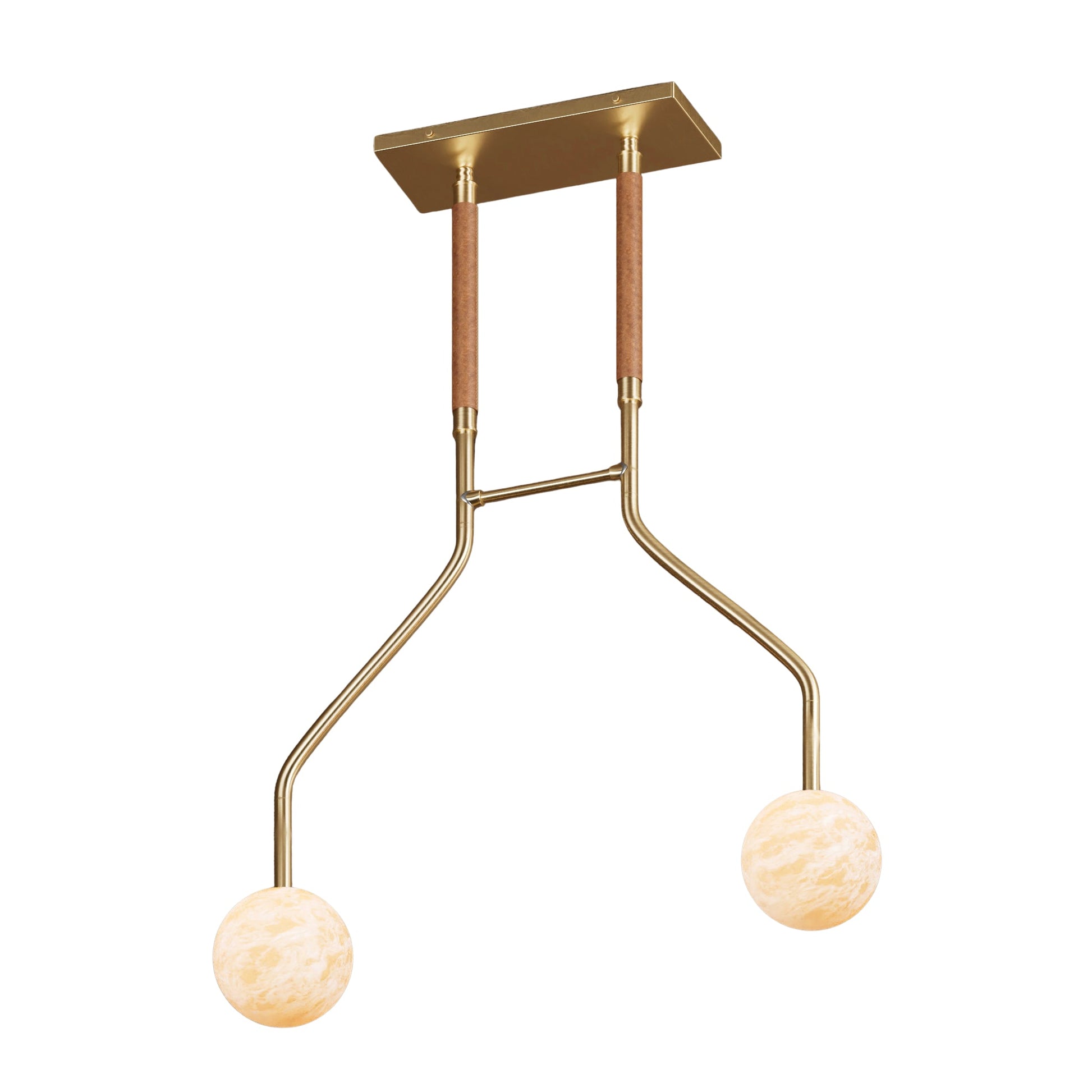 Elevate your bathroom design with the Peaks Alabaster Vanity Pendant, a striking fixture that blends sculptural form with timeless materials. Two lathe-carved alabaster globes are suspended on house-bent rods, positioned with precision to cast the perfect light over your vanity.