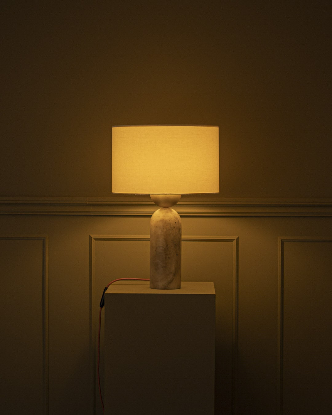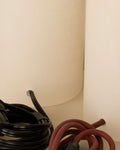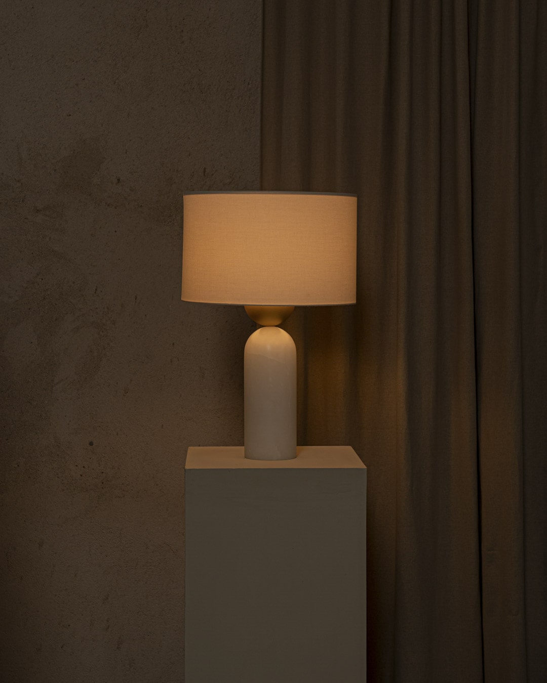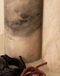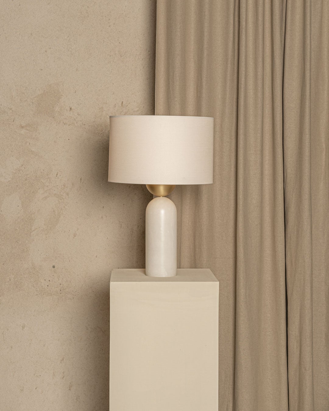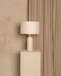One of Franco-Spanish brand Simone & Marcel's signature designs, the Peona table lamp is the perfect lighting companion for the living room or bedroom. Made in Spain, the table lamp stands for modernity and elegance, highlighting the know-how of the local craftsmen. Balancing curves and straight lines, this alabaster table lamp features a rounded brass detail and cotton drum shade. Combine the lamp with the designer's signature red cable for a colour contrast or a black cable for a matching look.