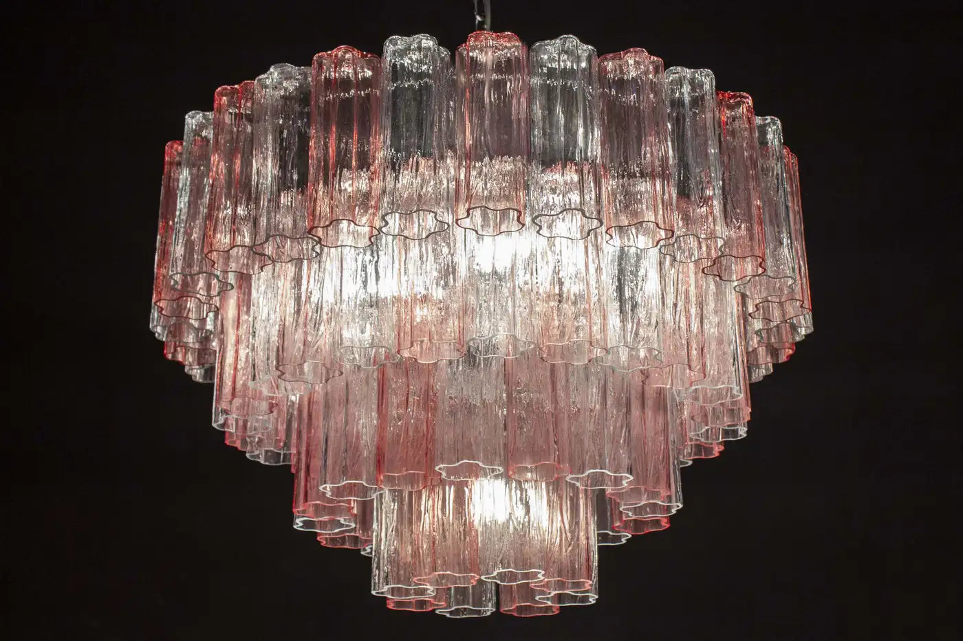 This extraordinary chandeliers is composed by 78 pink and ice color Murano glass 'Tronchi'