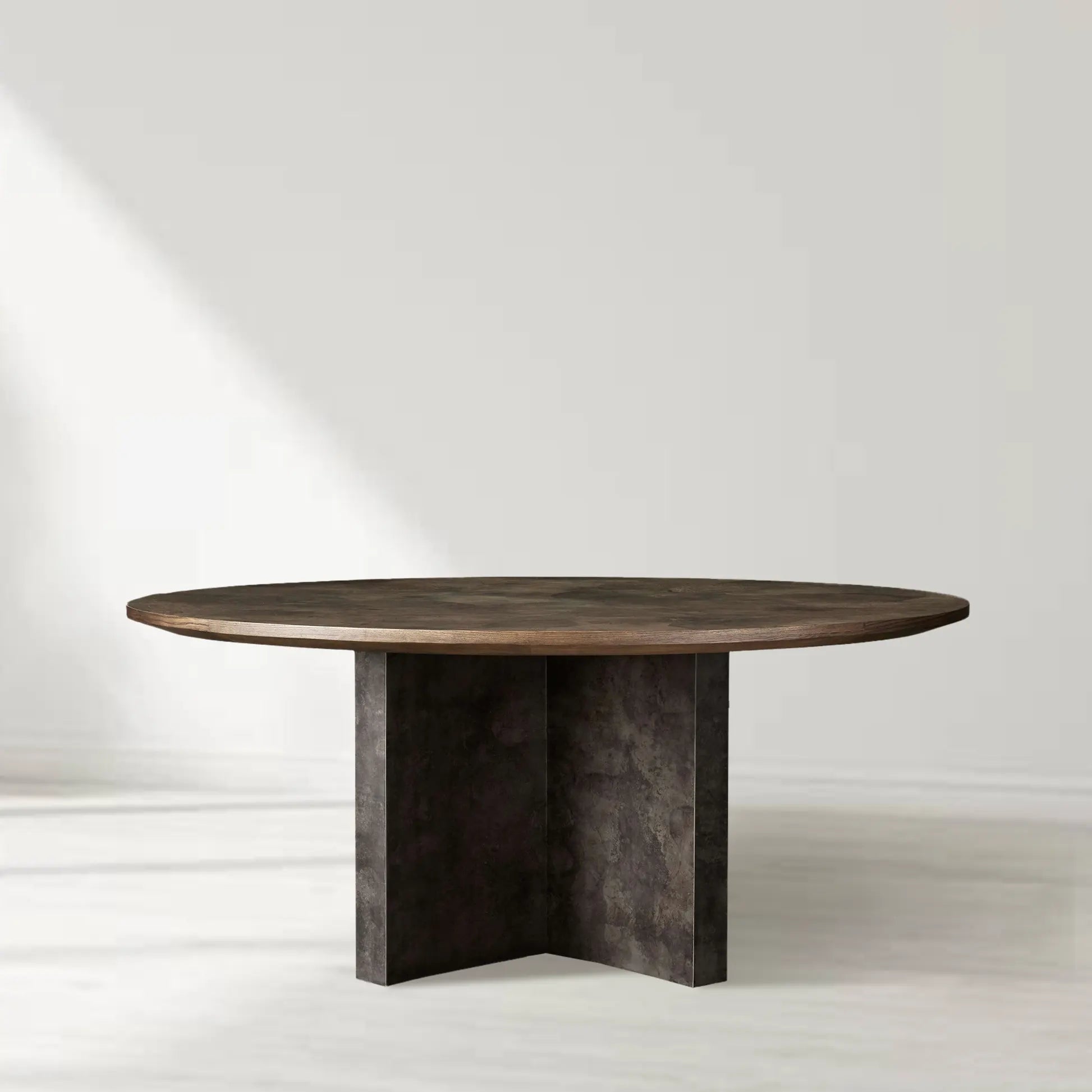 Loranco Wood Round Dining Table With Oxidized Steel Base