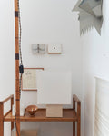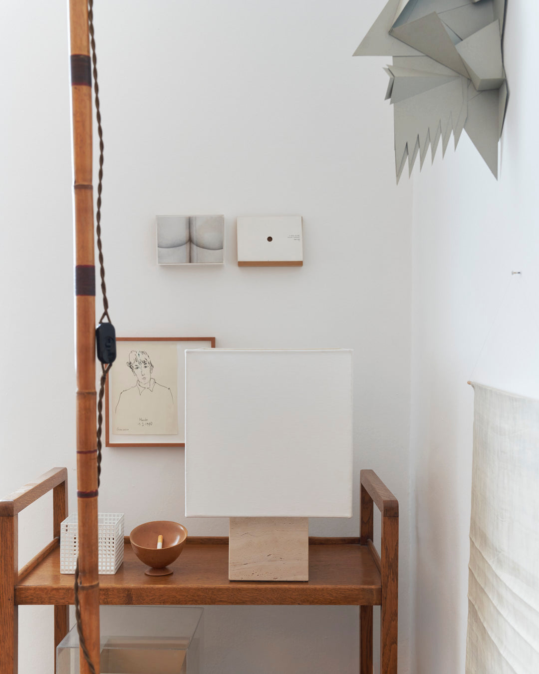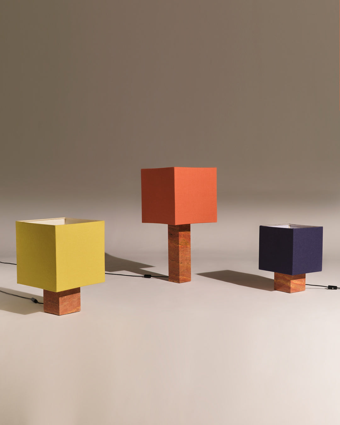 - Materials: Travertine, Linen, Cotton, Brass, Iron
