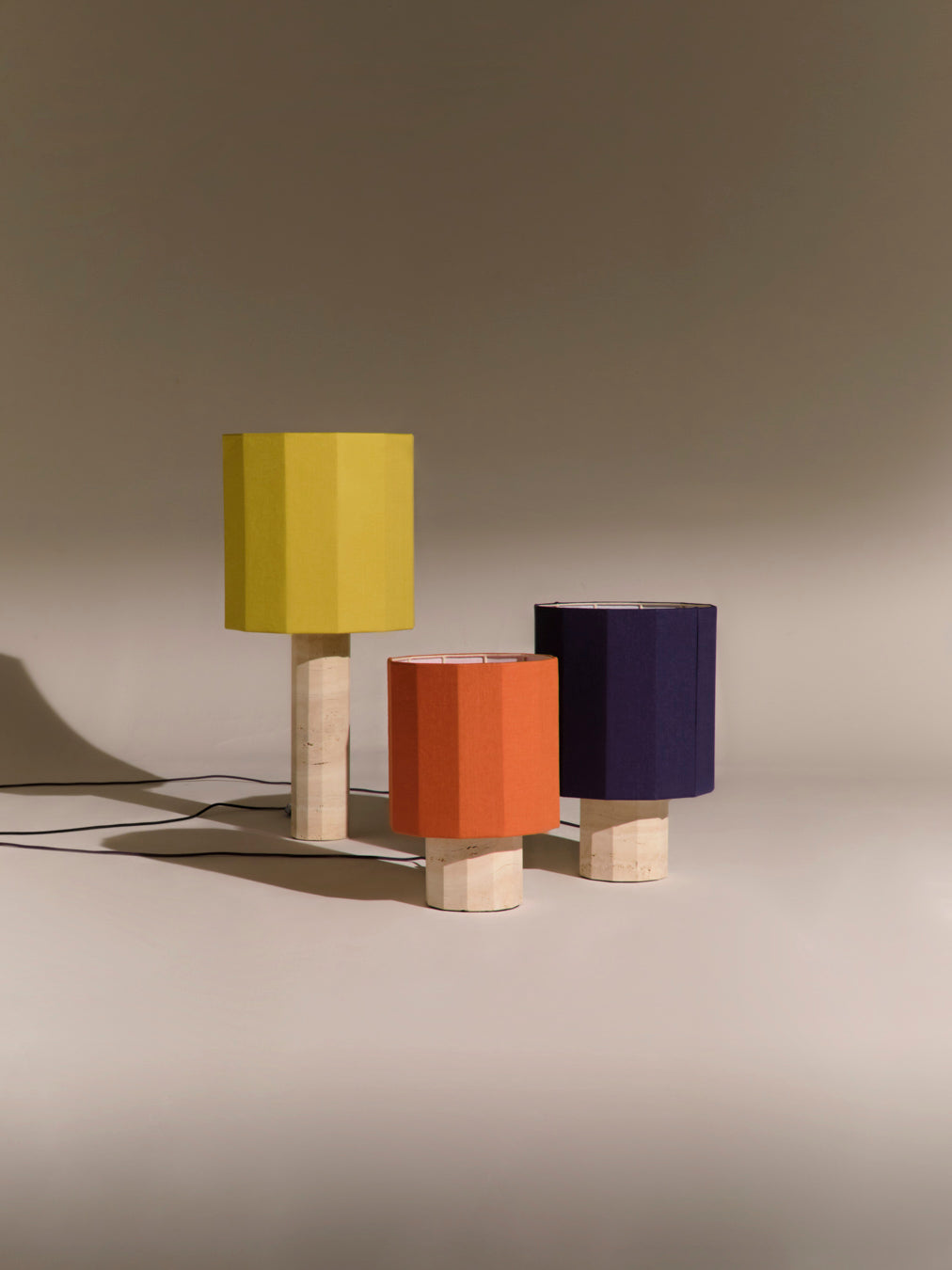 - Materials: Travertine, Linen, Cotton, Brass, Iron