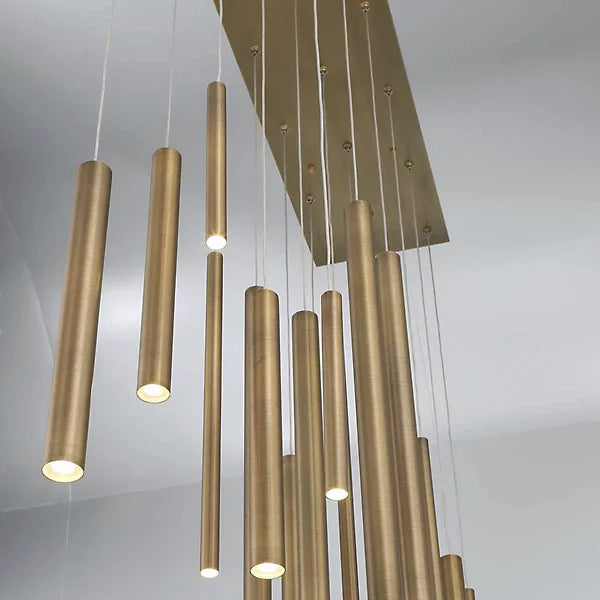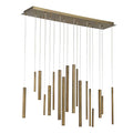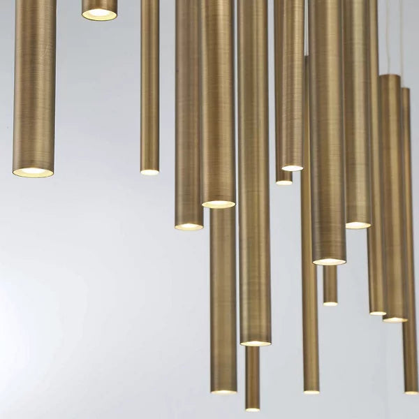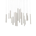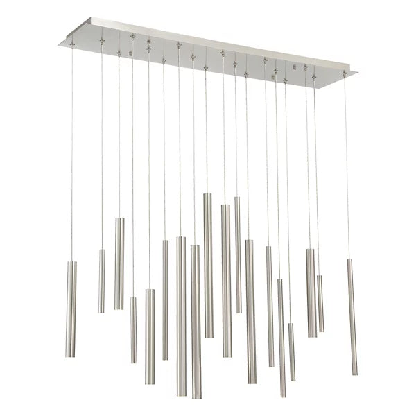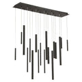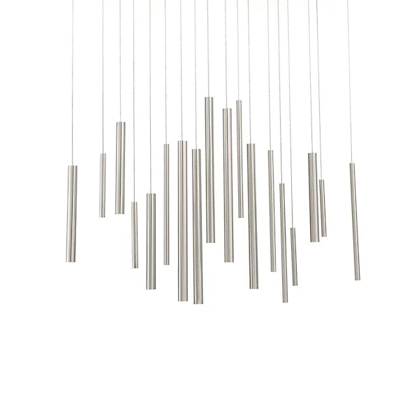 A melody of lines flows across the air in the riveting Santana LED Linear Suspension from Eurofase. At a distance, the design of extruded metal tubes appears to defy the laws of gravity, moving and transforming with a step in either direction. When underneath its presence, a cascade of polished tubes comes rushing down, each one pinpointed by the dot of an LED. The piece rains down a glorious array of clean light across the surface below.