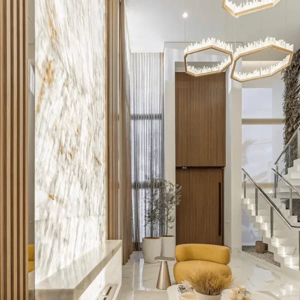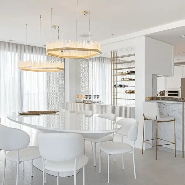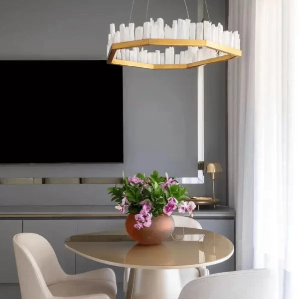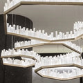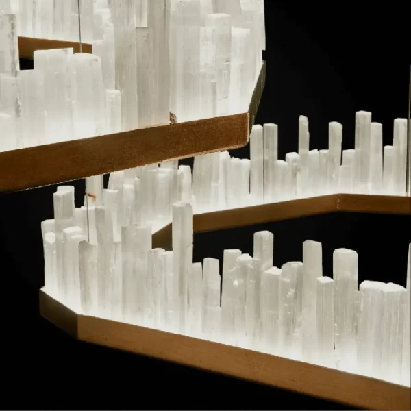 The Selenite LED Chandelier San Francisco is a a masterpiece that fuses the ethereal beauty of selenite with cutting-edge LED technology. Inspired by the majestic silhouettes of skyscrapers in grand metropolises, this stunning fixture transforms any room into a sanctuary of light and urban sophistication.