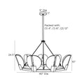 The Sierra Chandelier from Arteriors explores the various iterations of Art Deco with an inspired silhouette and bold personality. Embrace this fixture that features demilune-shaped white alabaster half-moon shapes anchored to an English bronze finish frame. Industrial influence sneaks in with a tri—part suspension feeding to a classic down rod.