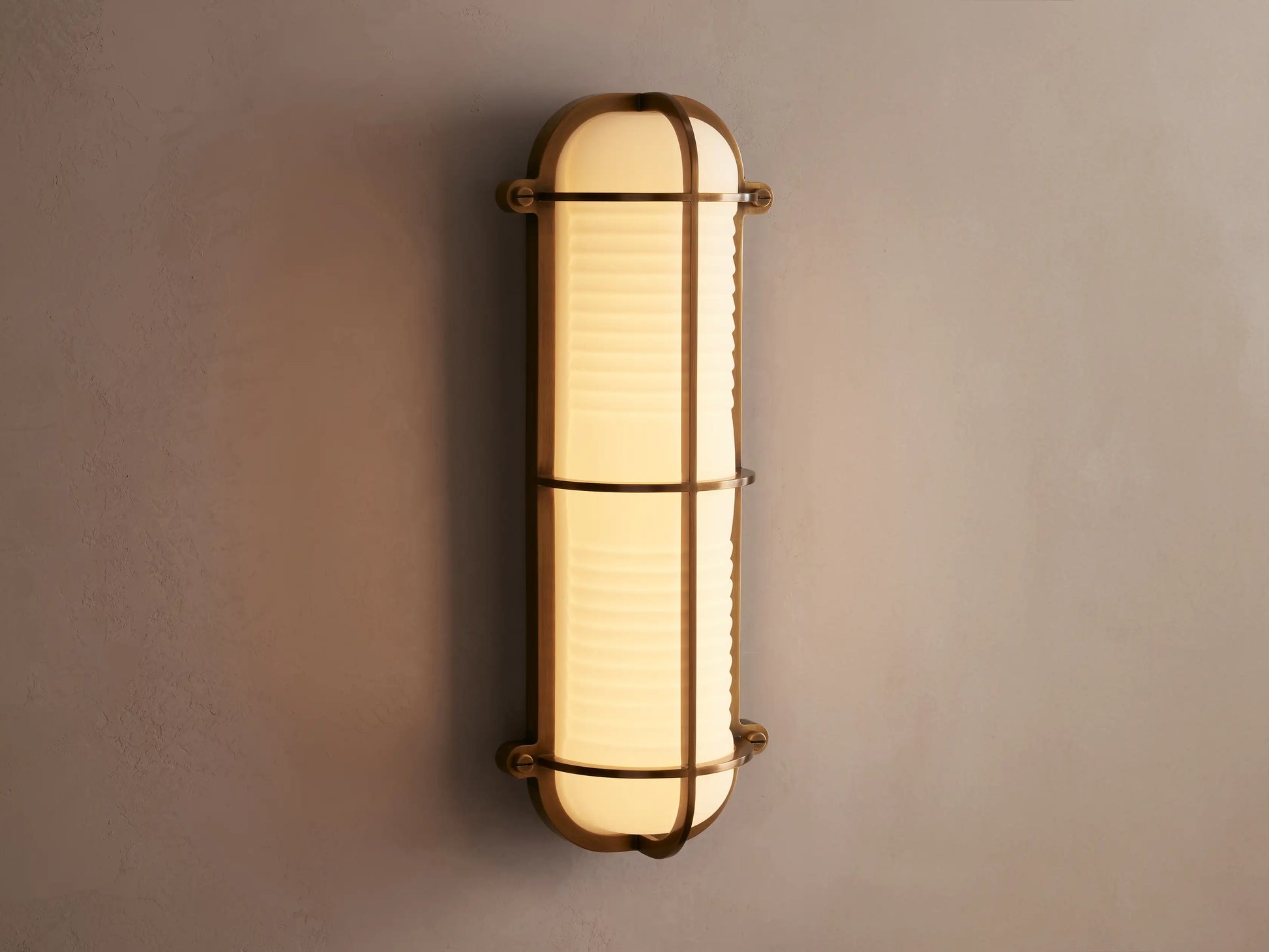 With a silhouette reminiscent of vintage dockside lighting, our Solomon Outdoor Sconce pairs brass-caged milk glass with LED illumination for a warm coastal glow that’s carefully crafted to withstand the elements.