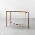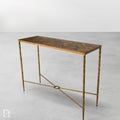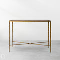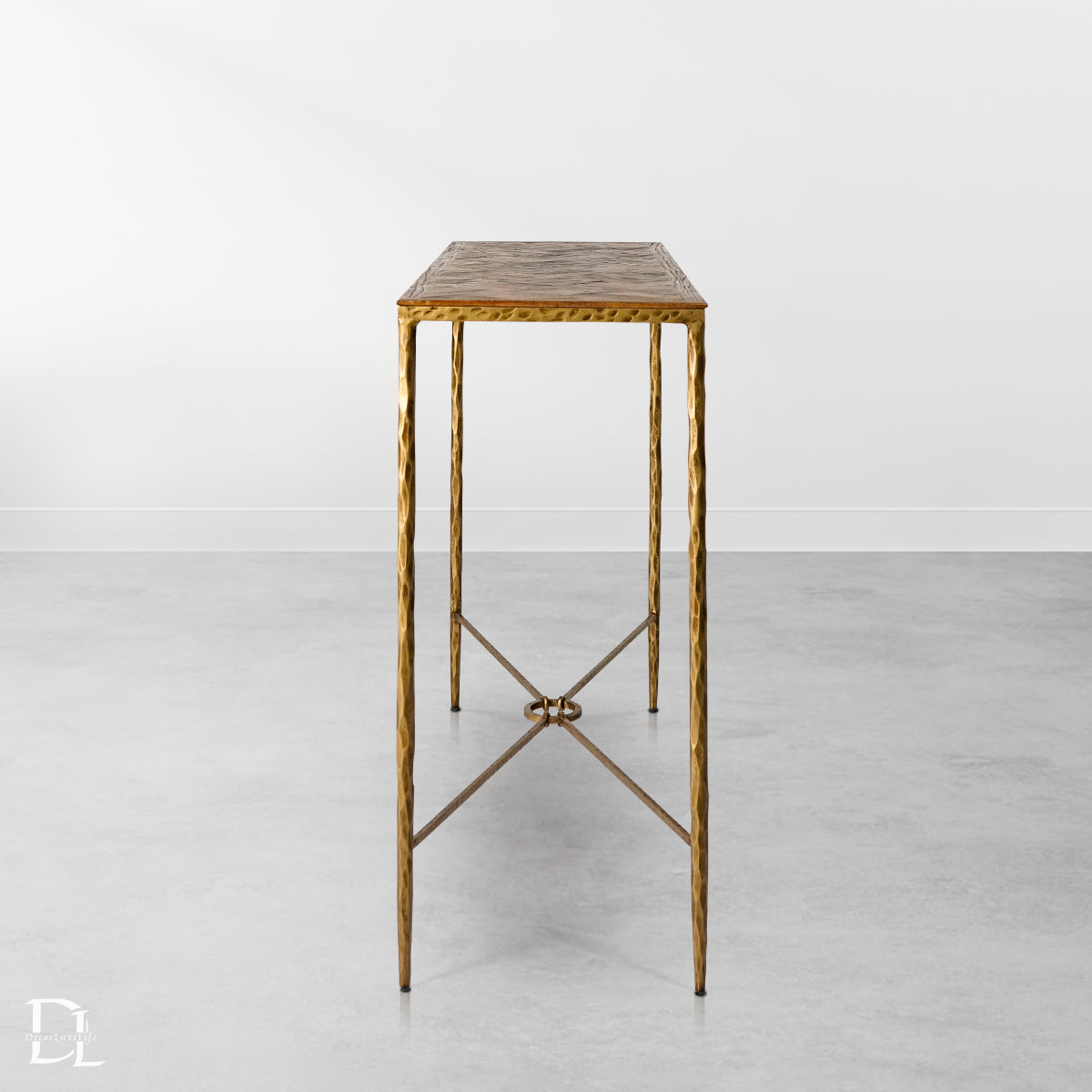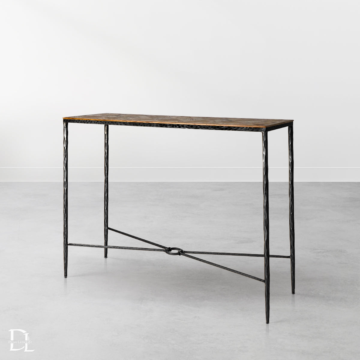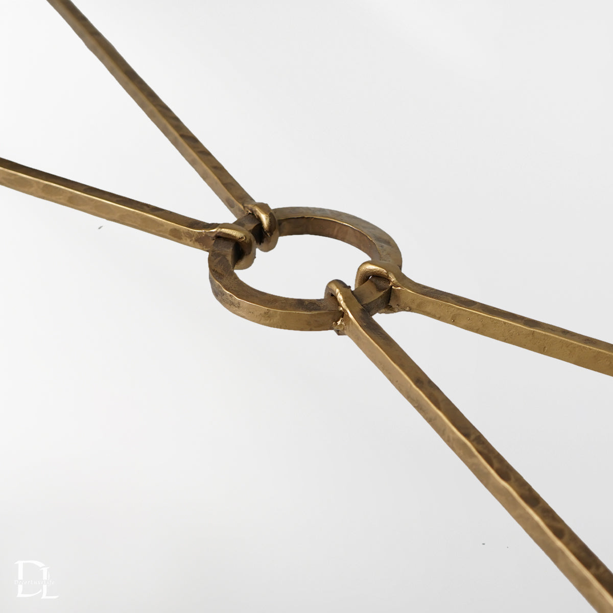 Inspired by 19th century French garden tables, neoclassical forms are reimagined with a modern sensibility. The slim frame features an X-shaped stretcher combined with a rounded center piece that showcases the beauty of hand-cast metal and adds exquisite detail.