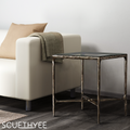 Inspired by the sculptural works of Salvador Dalí and Diego Giacometti, our collection by Alexander merges the rustic sensibility of a hand-forged metal base with a clear glass top. Employing an ancient fabrication process, artisans hand hammer the metal bars to reveal an alive, imperfect and organic texture, a counterpoint to the frame's slender, tapered silhouette.