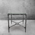 Inspired by the sculptural works of Salvador Dalí and Diego Giacometti, our collection by Alexander merges the rustic sensibility of a hand-forged metal base with a clear glass top. Employing an ancient fabrication process, artisans hand hammer the metal bars to reveal an alive, imperfect and organic texture, a counterpoint to the frame's slender, tapered silhouette.