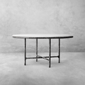 Our collection by the rustic sensibility of hand-forged metal with cool Italian marble. Employing an ancient fabrication process, artisans hand hammer the metal bars to reveal an alive, imperfect and organic texture. The pounded, tapered silhouettes are a rich counterpoint to the smooth, honed stone.