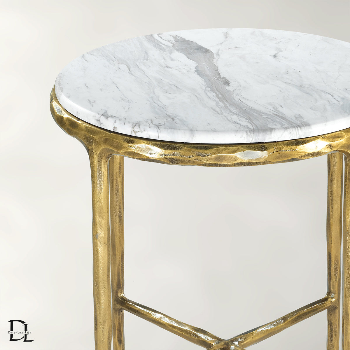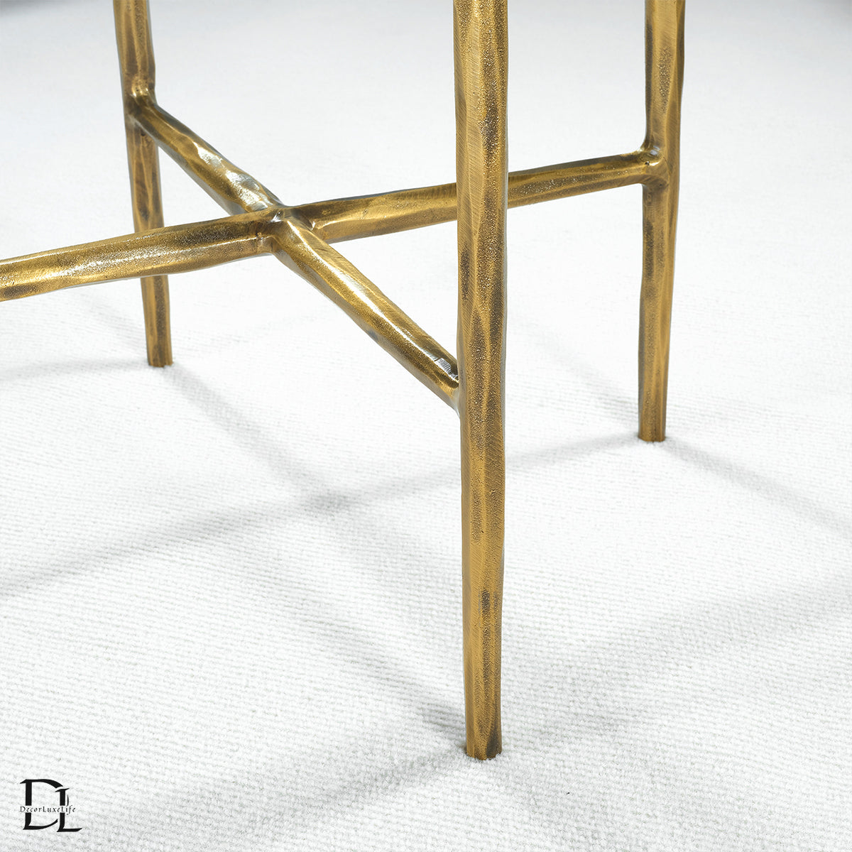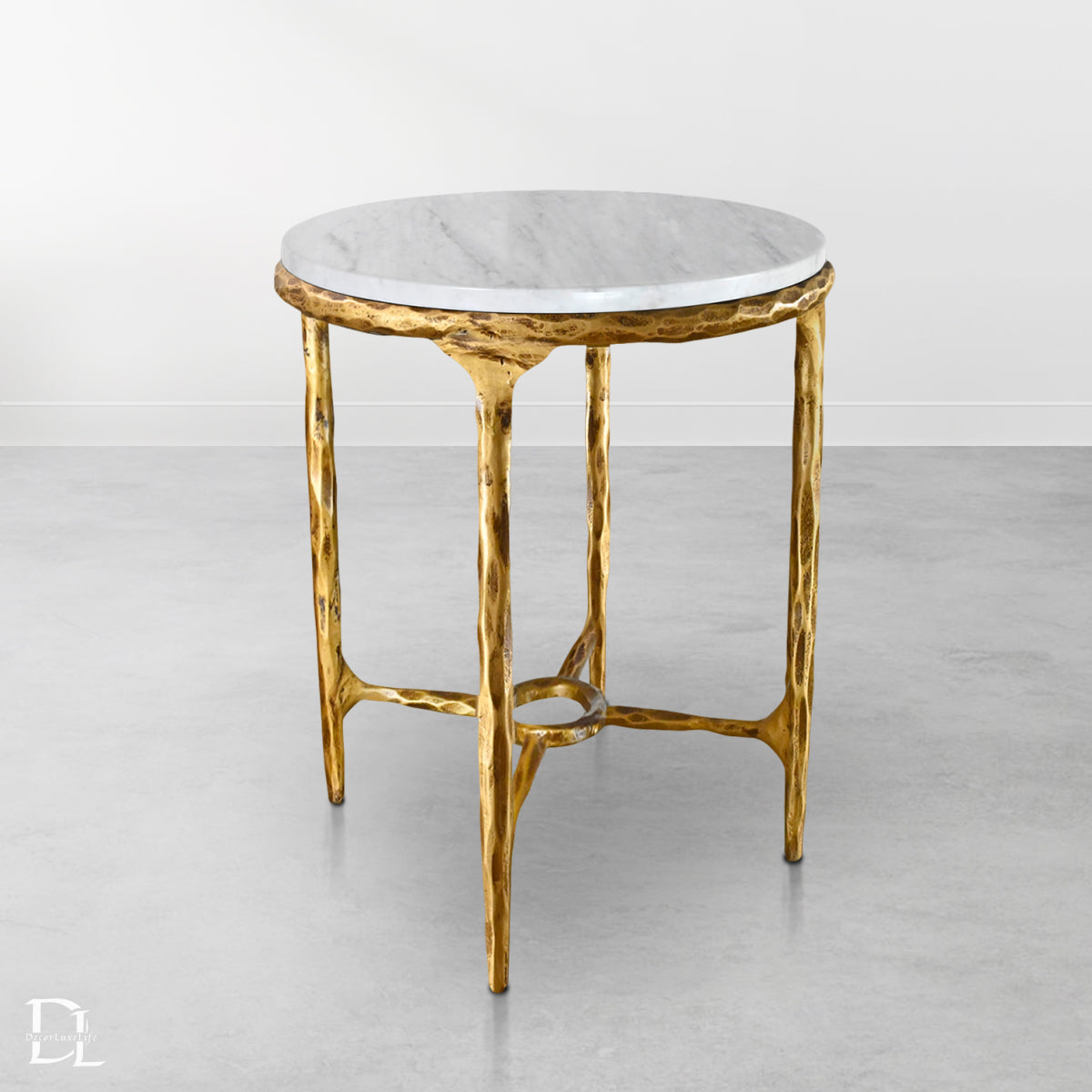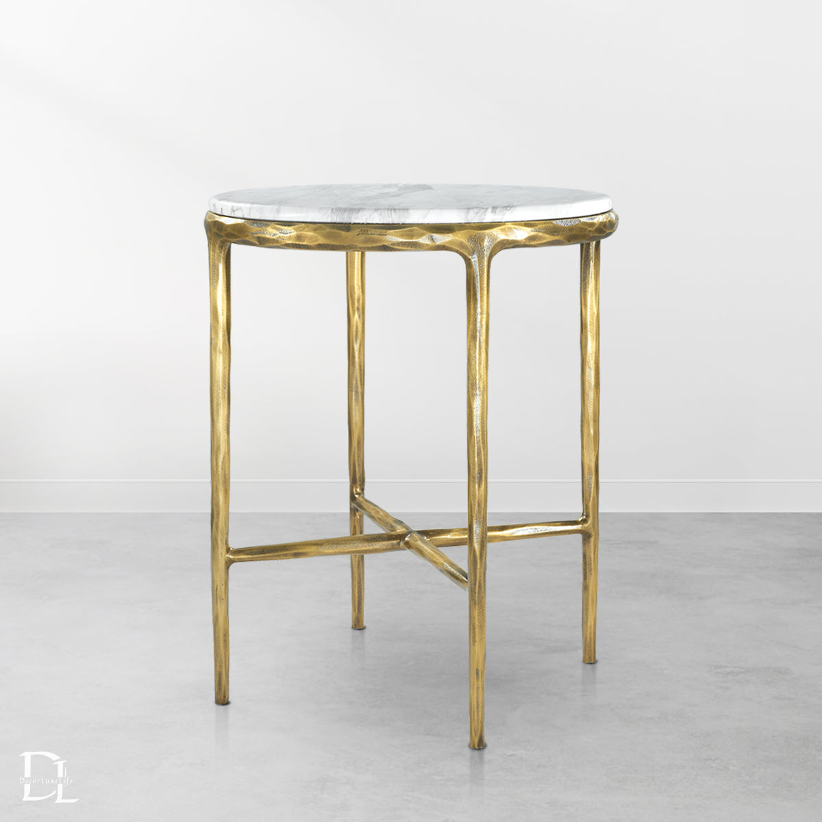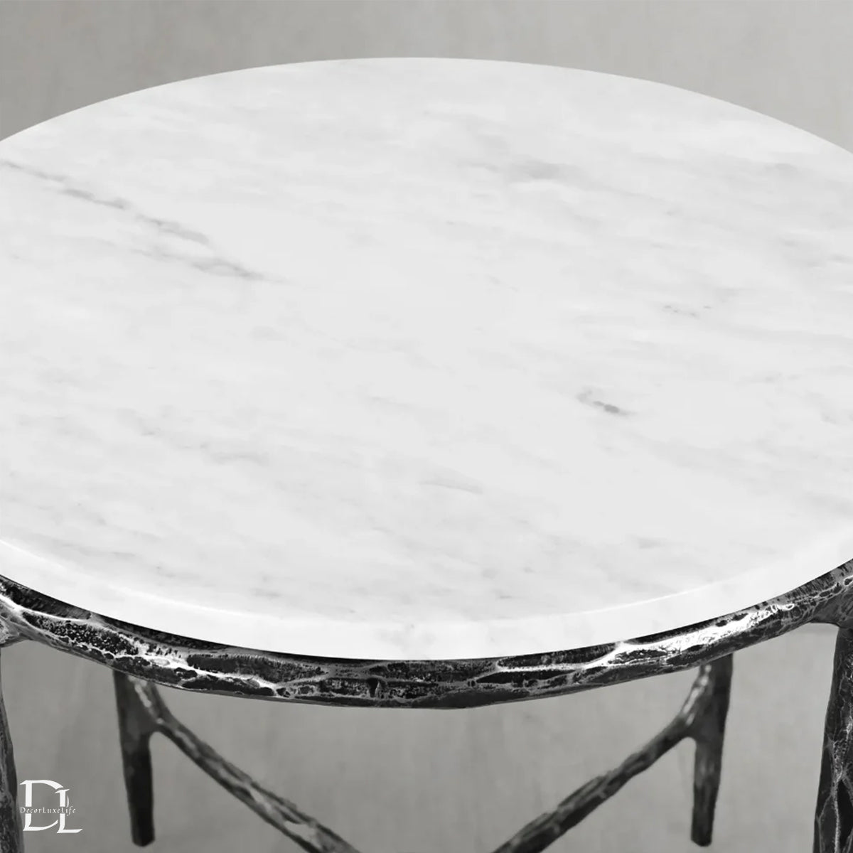 Our collection by the rustic sensibility of hand-forged metal with cool Italian Carrara marble. It can also change to glass top.Employing an ancient fabrication process, artisans hand hammer the metal bars to reveal an alive, imperfect and organic texture. The pounded, tapered silhouettes are a rich counterpoint to the smooth, honed stone.