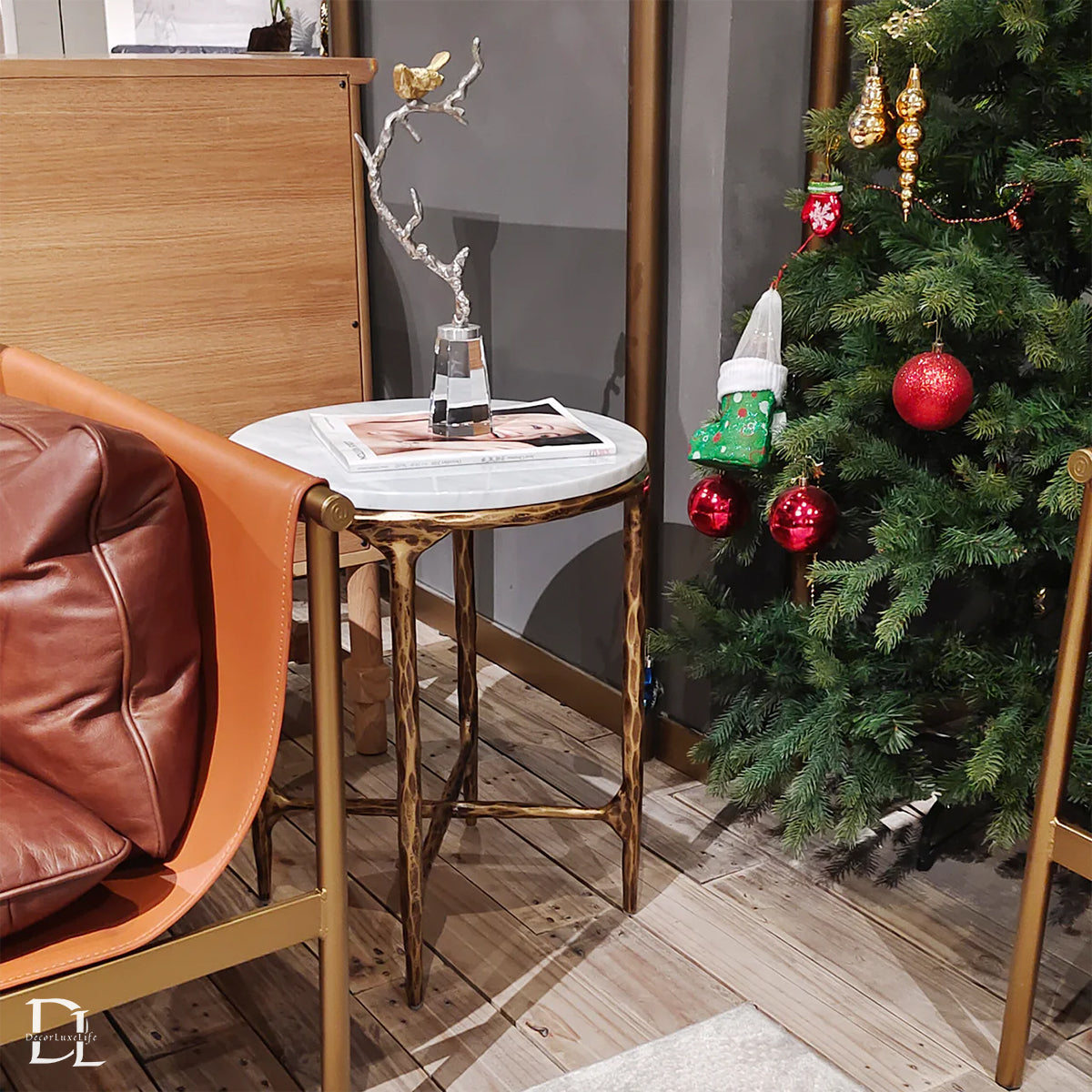 Decorluxelife sources materials such as raw-edge acacia wood, stainless steel, nickel, aluminum, velvet, suede, and silk to create their furniture pieces. Each item is designed to be unique and cater to various aesthetics.