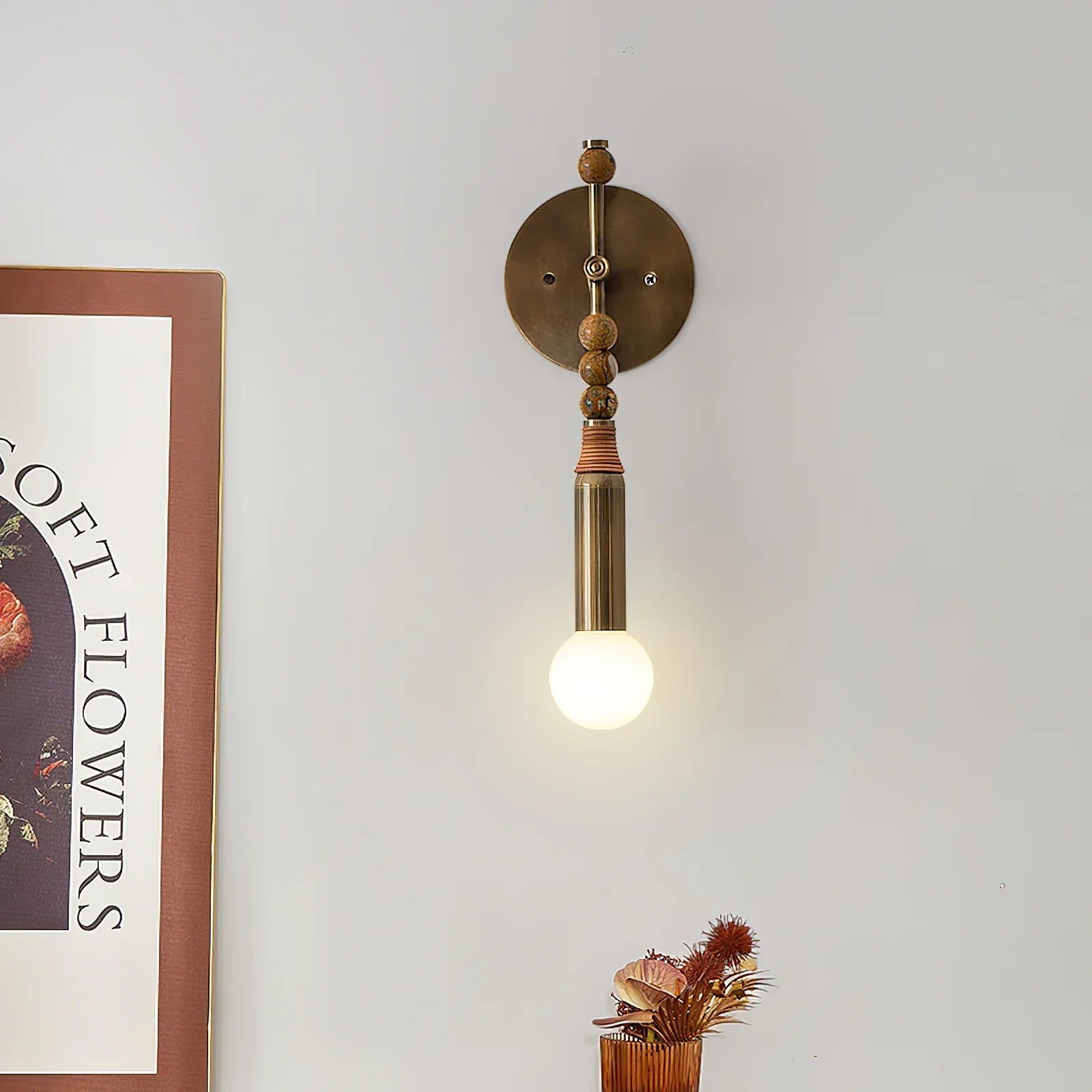 Bringing archaeological interest to lighting, the Toam sconce is inspired by the semi-precious stones found on statues in the ancient city of Persepolis. Marble are pierced by a finely fluted brass pin, which is affixed to a bound brass structure. As elegant as a pair of earrings, this jewel-like piece would look impactful as a pair.