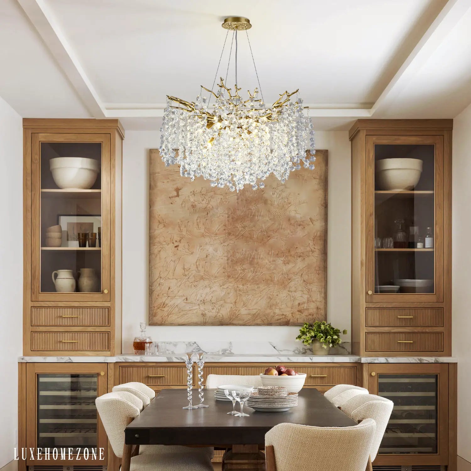 The Solara Round Chandelier 30" 40" 55" Tree Branch Tree Branch stands as a luxurious and intricately designed masterpiece, ideal for grand staircases or as a captivating focal point in rooms or lobbies, making a bold statement. This chandelier is part of our branch detail chandelier collection, drawing inspiration from the beauty of nature and meticulously handcrafted to perfection.