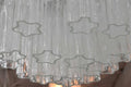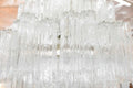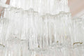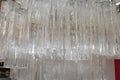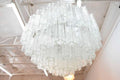 Chandelier has eight layers, 12 light sockets (not all lit in photograph), all crystals are present. Measures: 40" high and 30" diameter.
